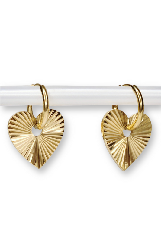 Anti-Tarnish Stainless Steel Textured Heart Charm Hoop Earrings