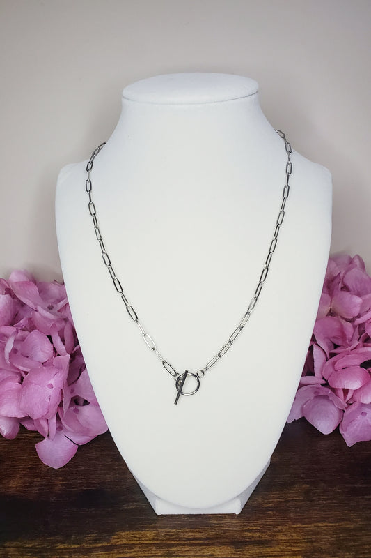 Stainless Steel 19" Toggle Clasp Paperclip Chain Necklace- Available in Gold & Silver!