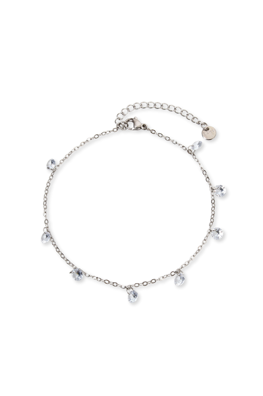 Stainless Steel Dainty Clear Rhinestone 8.7" Anklet- Available in Gold & Silver!