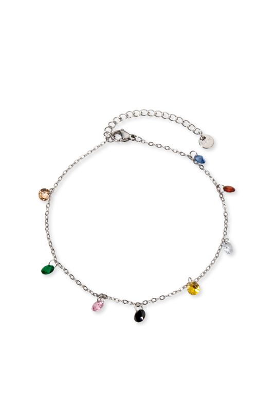 Stainless Steel Dainty Colorful Rhinestone 8.7" Anklet- Available in Gold & Silver!