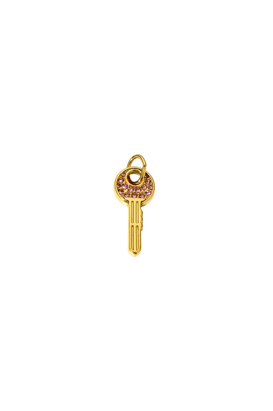Stainless Steel Large Cubic Zirconia Pave Key Charm