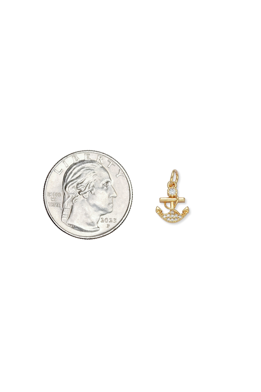 Gold Filled Dainty CZ Accent Nautical Anchor Charm