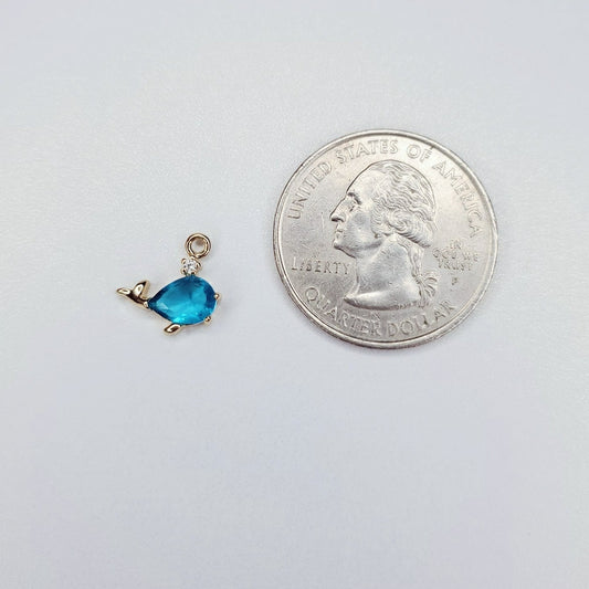 18K Real Gold Plated Rhinestone Whale Charm