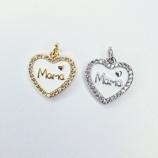 18K Real Gold & Platinum Plated Heart Shaped Mama Charm