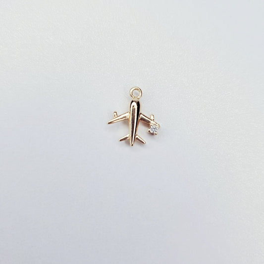 18K Real Gold & Platinum Plated Dainty Cubic Zirconia Airplane Travel Charm