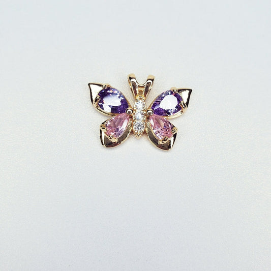 Gold Filled Butterfly Purple & Pink Cubic Zirconia Charm