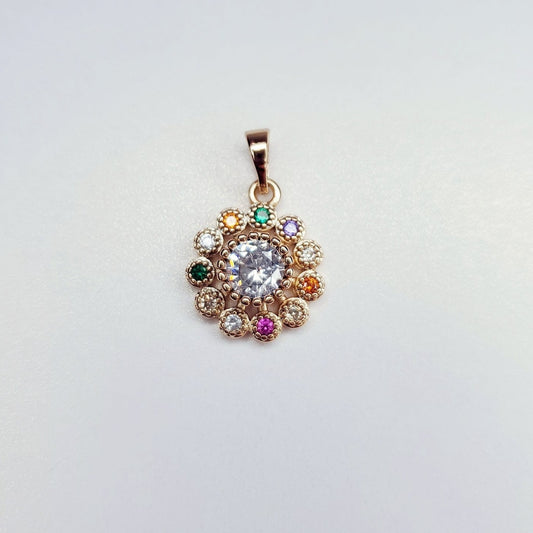 24K Gold-Filled Round Multicolored Rhinestone Charm
