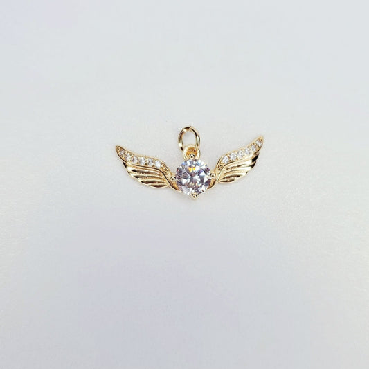 Gold Filled Golden Angel Wing with Round Cubic Zirconia Charm