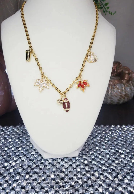 Pre-Designed 17" Fall Seasonal Charm Necklace in Gold