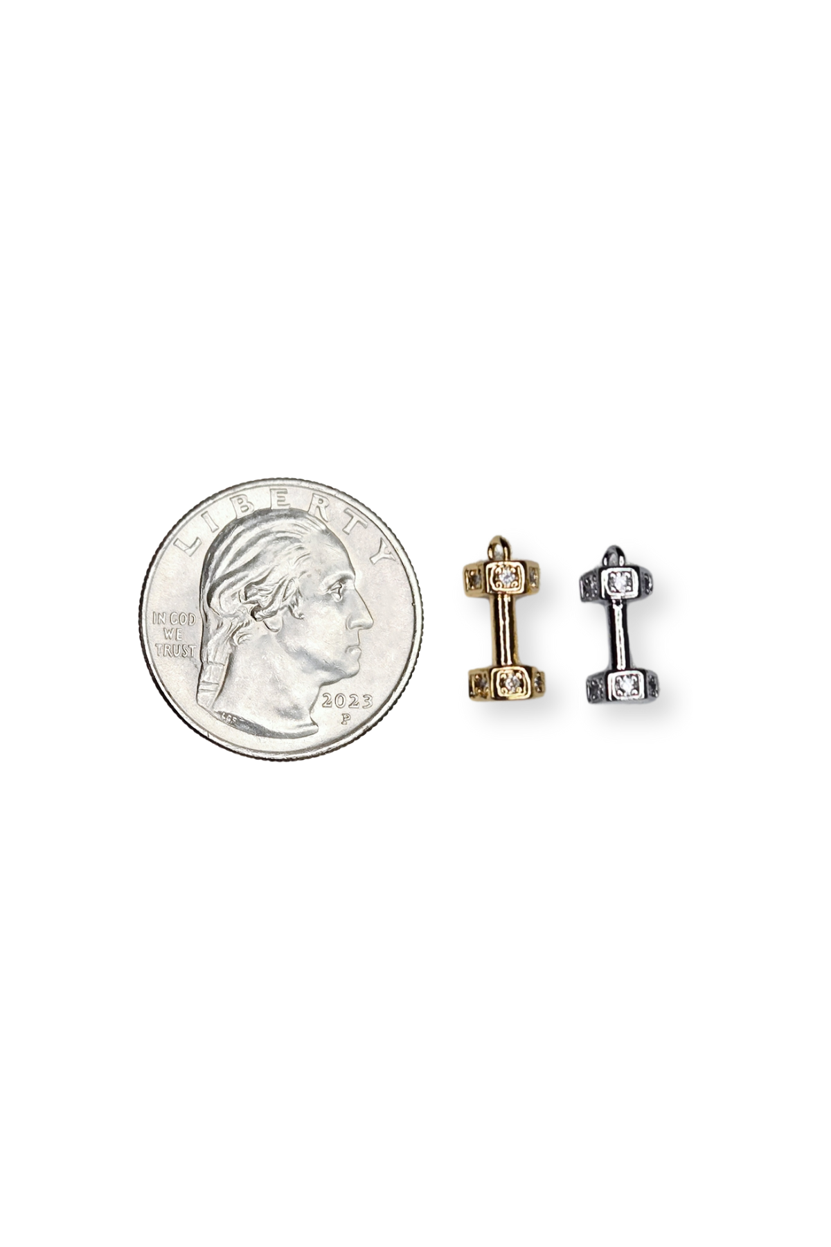 Cubic Zirconia Micro Pave 3D Dumbbell Fitness Charm