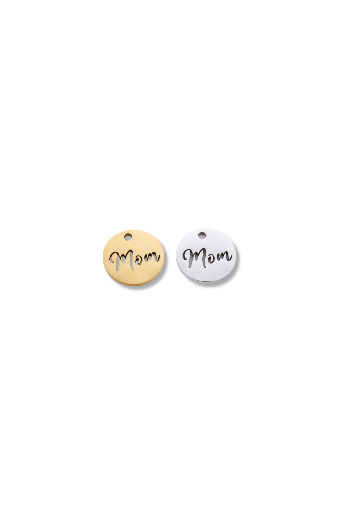 Stainless Steel Disk Cut-Out Cursive Mom Charm